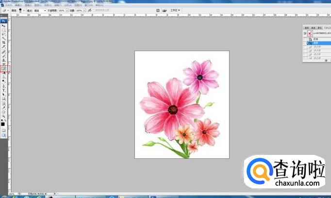 选中photoshop页面中左边红框内的橡皮擦工具,可以看到鼠标指示处出现一个圆圈。