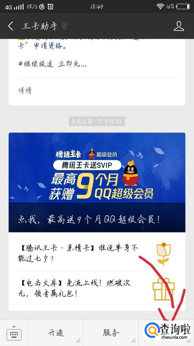 点击进入王卡助手,会出现一个新的界面,如图1所示。点击右下角“特权”选项,如图1箭头所示。会出现一个新的界面,如图2所示。