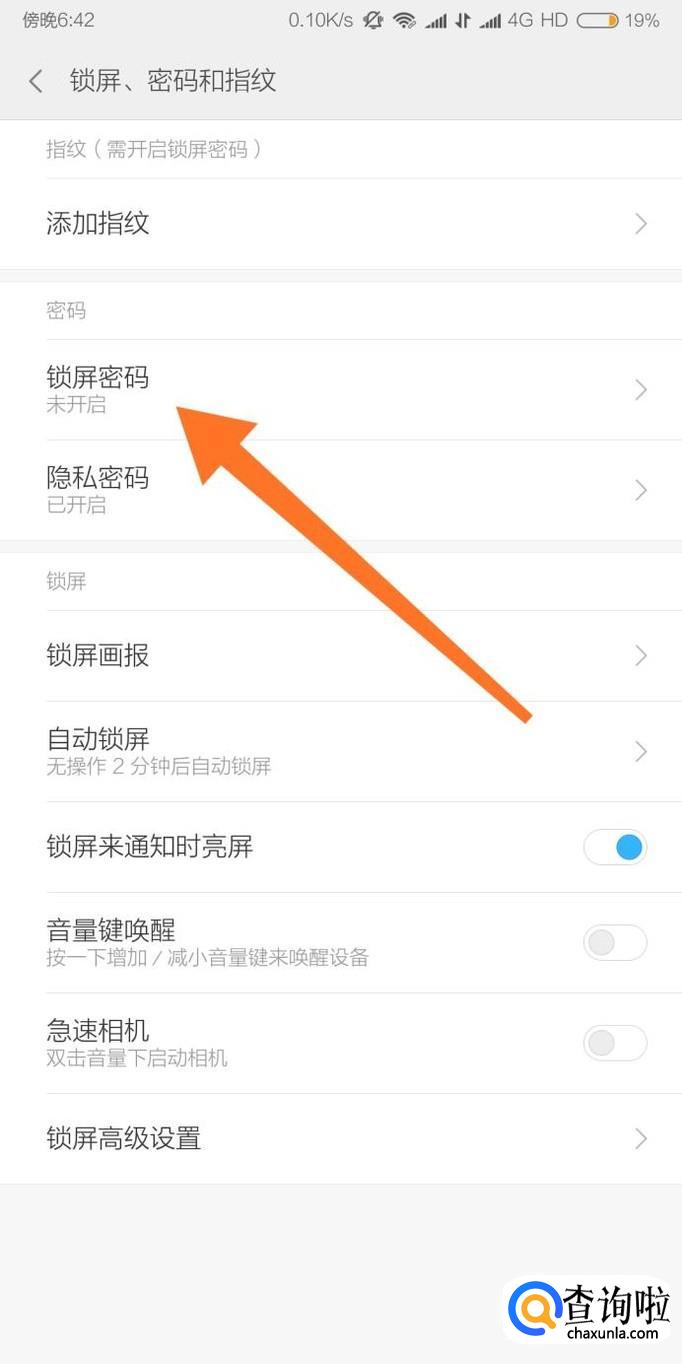 然后点击进入“锁屏密码”设置选项。