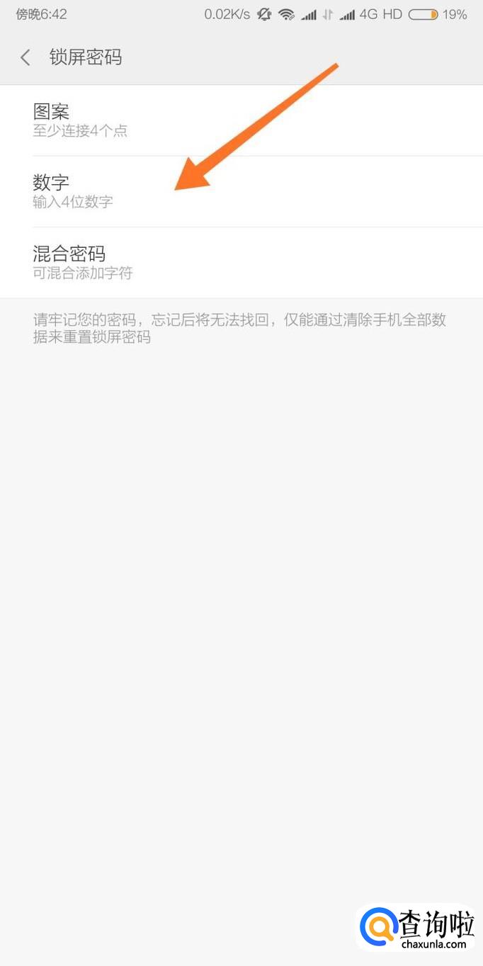 接下来选择解锁的方式,在这里小编选择数字锁屏密码。