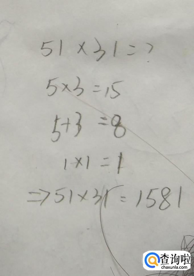 几十一乘几十一的速算方法:头乘头,头加头,尾乘尾,例如51*31=?