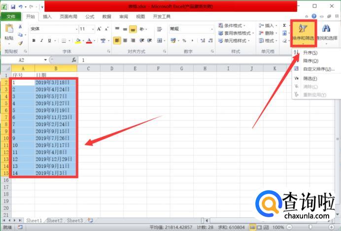 然后我们就可以看到日期按照先后顺序排列了起来。
