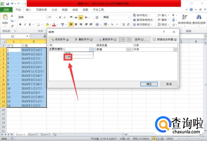 然后我们会看到,原来的日期,就变化为了数值,说明日期是可以排序的。