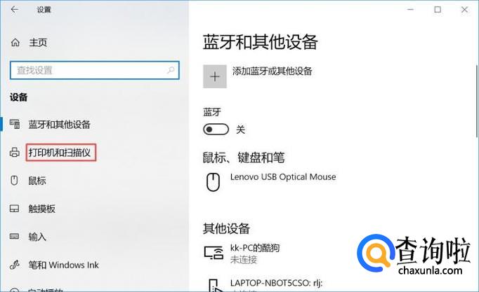 弹出的界面,我们点击打印机和扫描仪;