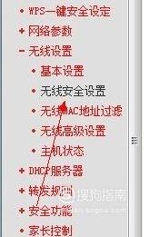 选中无线设置后,在弹出的设置选项中选择“无线安全设置” 。