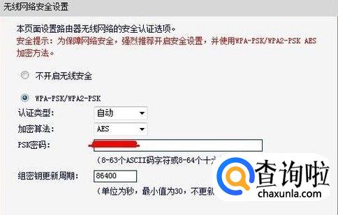 然后就会弹出安全设置的信息页面,在页面中即可找到无线路由器的密码。