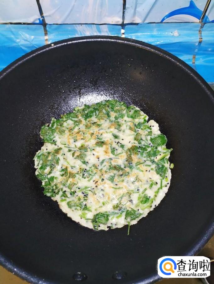 小火慢煎,煎至两面金黄就差不多了,火千万不能大,否则饼容易糊。
