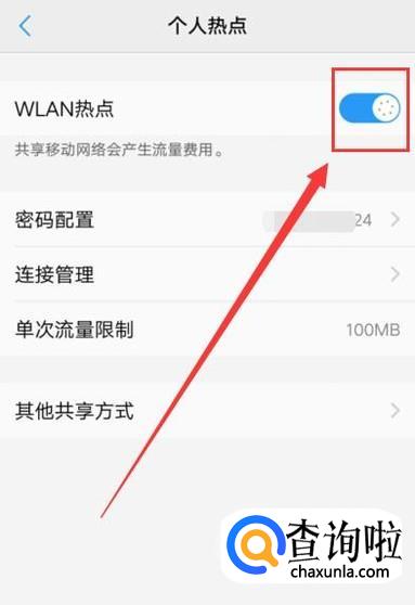进入之后,将个人热点打开,设置好密码,如图所示。