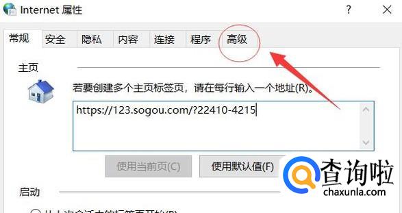 打开Internet属性,选择最后的高级选项