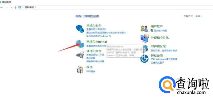 打开电脑的控制面板,找到网络和Internet