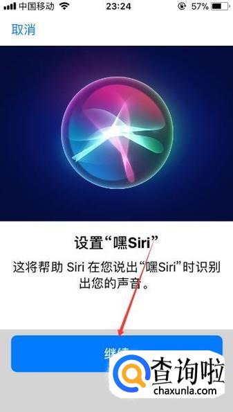 之后需要用户设置【“嘿Siri”】,接着点击【继续】按键。