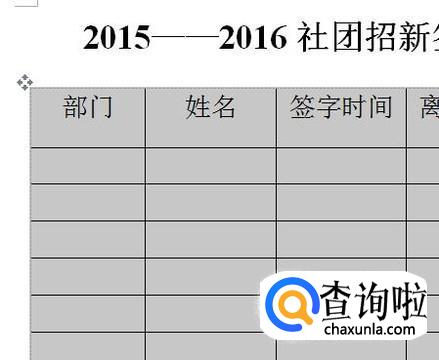 返回表格的页面,找到表格左边的按钮,单击选中整个表格,可以看到表格变成灰色了。