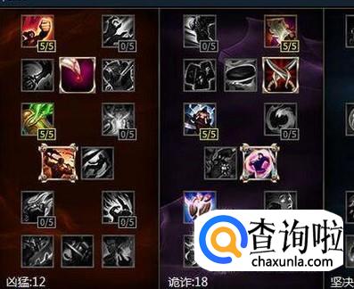 天赋的话我们最好点击雷霆,因为雷霆会有一个额外的伤害,而这个伤害在有些时候是会有奇效的哦,尤其是在没有带引燃的凯南身上很实用,一般点击凶猛12,诡诈18。