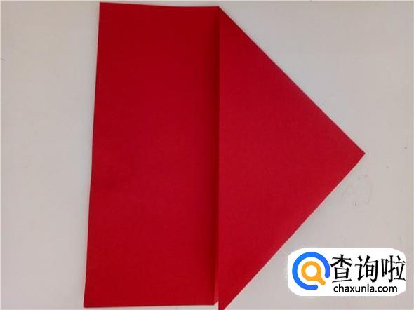 首先我们将彩纸的短边和长边对齐,折出一个大三角,如图所示。
