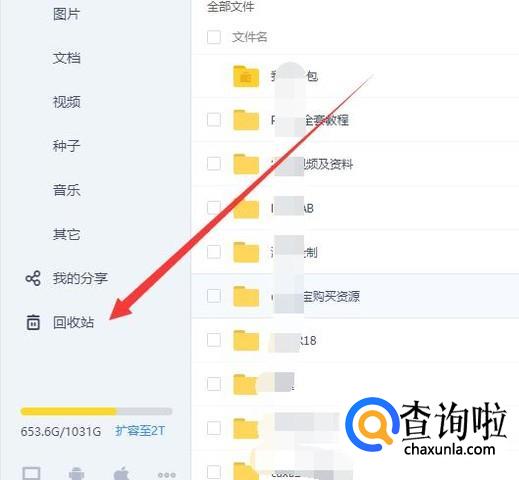 进入之后,点击“回收站”,进入下一页面,如图所示。