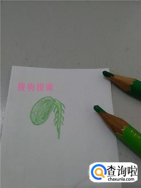 先用深绿色在纸上画一个椭圆形,表示种子。