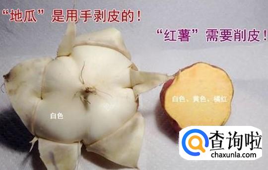 地瓜可以直接用手剥皮,红薯则需要用刀才能削去外皮。