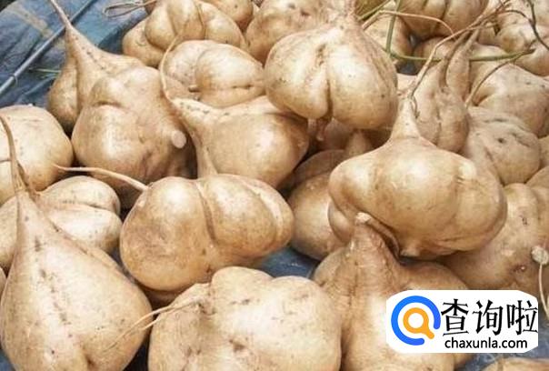 地瓜形状很像疙里疙瘩的大陀螺;皮是淡黄偏白,剥开外面微黄的皮,里面的肉非常白。