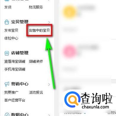 在左侧的功能导航中,找到并点击:出售中的宝贝