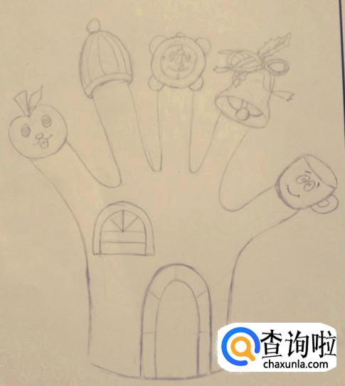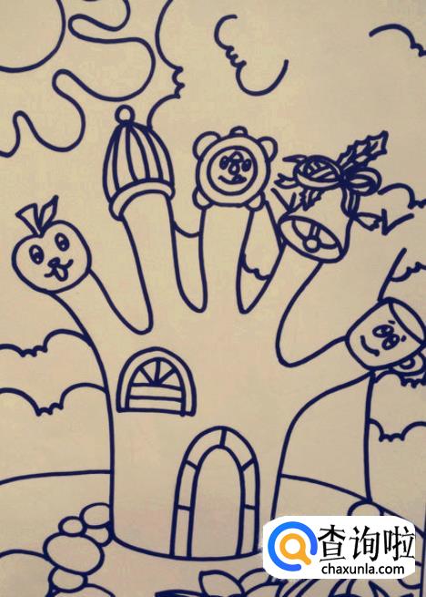 接下来在五根手指上分别画出下朋友喜欢的东西,也可以画出一些日常用品,比如闹钟、杯子等等。值得注意的是,手指上的东西,最好每个都画成一样大。