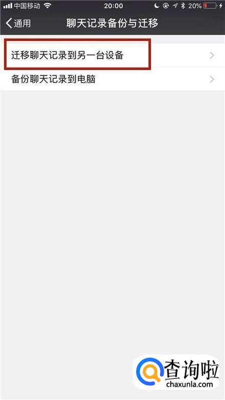 然后点击迁移聊天记录到另一台设备,如下图所示。