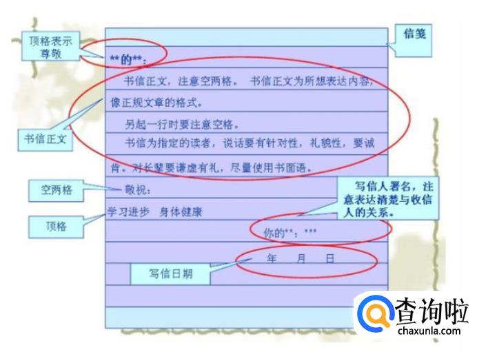 称呼也称“起首语”,是对收信人的称呼。称呼要在信纸第一行顶格写起,后加“:”,冒号后不再写字。称呼和署名要对应,明确自己和收信人的关系。