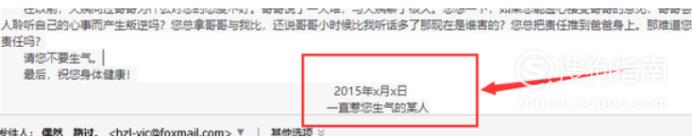 在书信最后一行,署上写信人的姓名。署名应写在正文结尾后的右方空半行的地方。如果是写给的亲属、朋友,可加上自己的称呼,如儿、弟、兄、侄等,后边写名字,不必写姓。如果是写给组织的信,一定要把姓与名全部写上。而在署名之后,有时还视情加上“恭呈”、“谨上”等,以示尊敬。上述自称,都要和信首的称谓相互吻合。 日期一项,用以注明写完信的时间,写在署名之后或下边。有时写信人还加上自己的所在的地点,尤其是在旅途中写的信,更加需要这样!如图的部分。