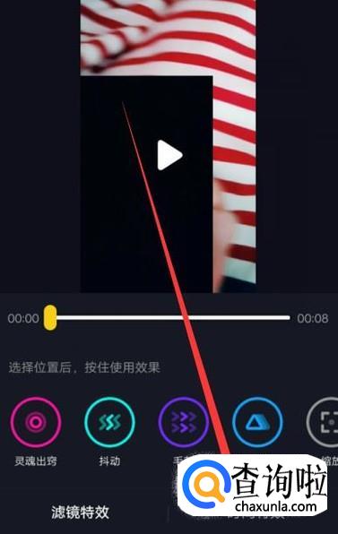 拍摄完成之后,选择“特效”,进入下一页面。