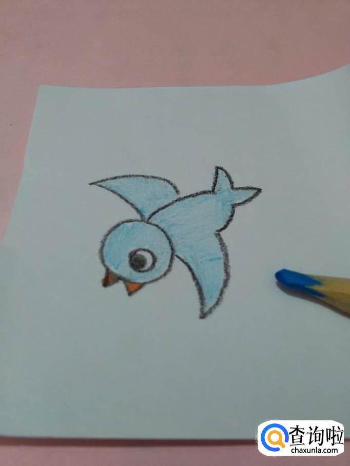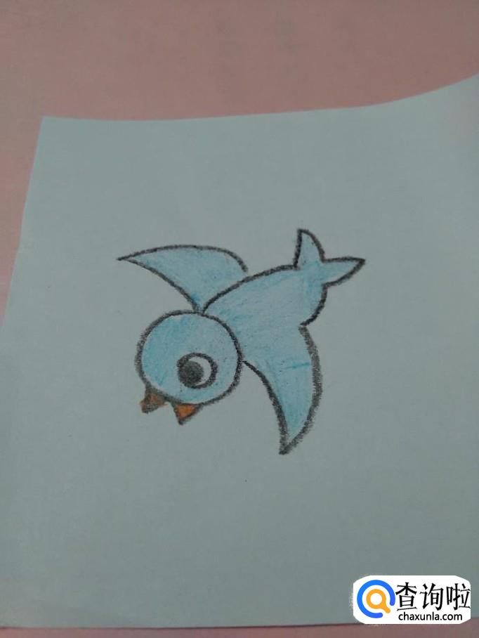最后,用浅蓝色笔把小鸟身体全部涂成浅蓝色,这样小鸟的简笔画就画完了。