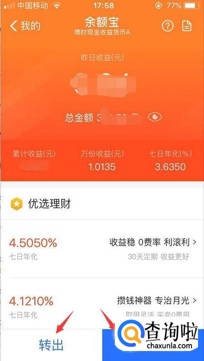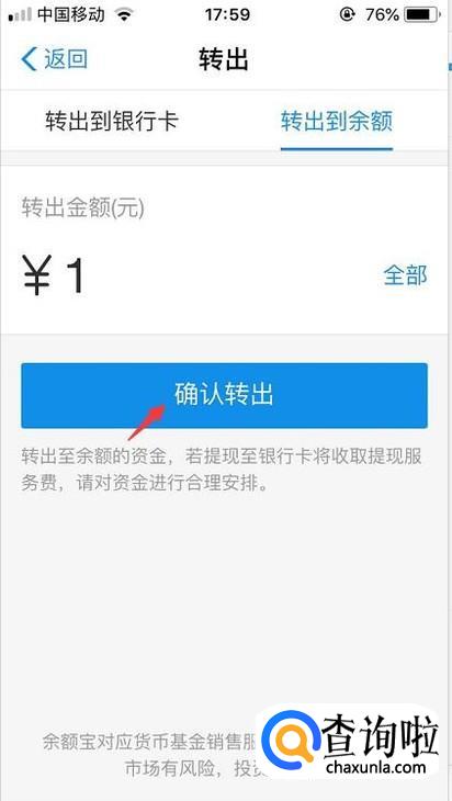选择转出的时候我们点击到转出到余额,然后点击确认转出。