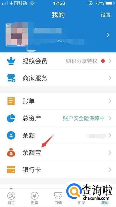 首先我们登录支付宝后在我的个人页面里进入到余额宝功能。