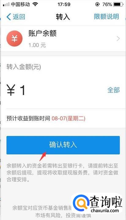 转入的时候我们同样点击从余额转入即可。