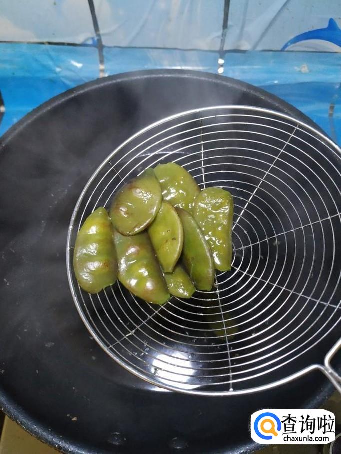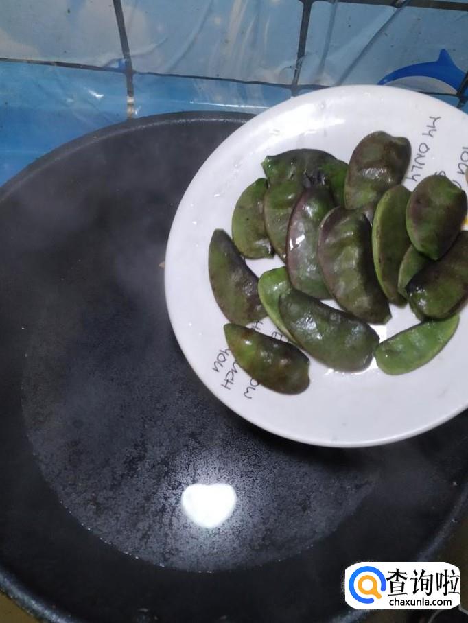 准备适量扁豆,洗净后去除豆筋,锅中烧开水,水开后将扁豆倒入锅中焯水,焯熟捞出。