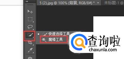 接着我们选中界面左边的"快速选择工具",鼠标右击,就会弹出"魔棒工具",将其选中。