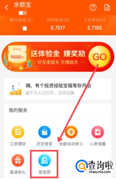 然后在【我的服务】下找到【笔笔攒】,点击进入。