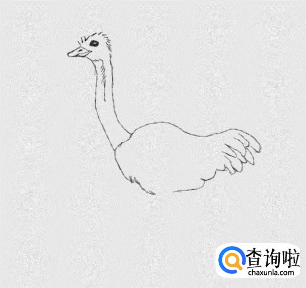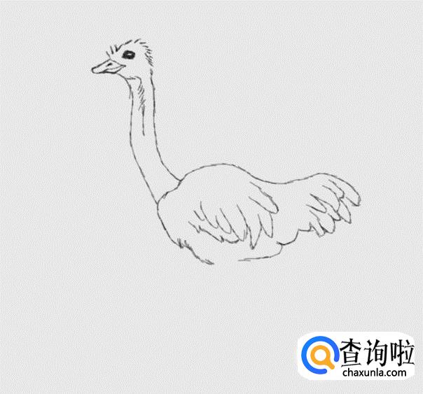 再在鸵鸟的身体上画出鸵鸟的翅膀,如图所示: