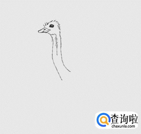 再在头部的基础上我们画出鸵鸟长长的脖子,如图所示: