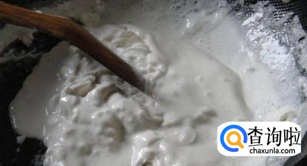 将火打开,大火煮,煮的过程中边煮边搅拌,煮到快干的时候将香油倒入,再继续搅拌,直到完全干,然后将成型的山芋切成小丁,成山芋圆子。