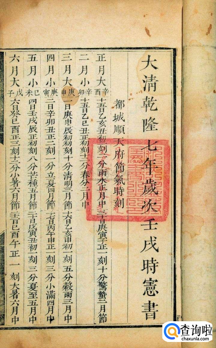 以清代为例,封面格式是这样的:“大清乾隆某年钦颁时宪书”
