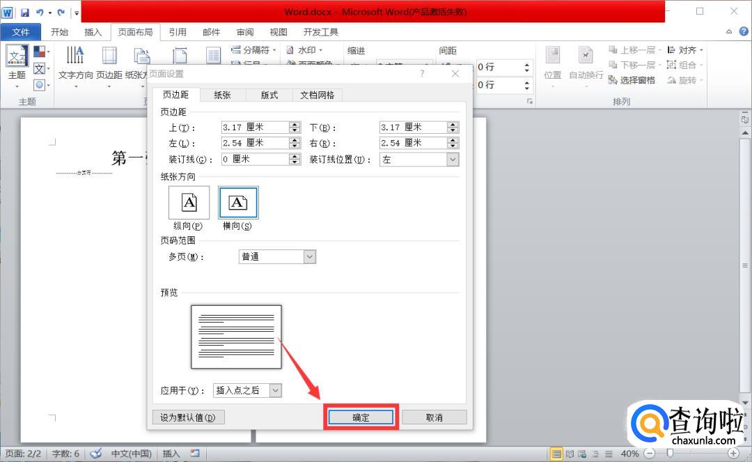纸张方向和插入点之后选好之后,我们点击【确定】。