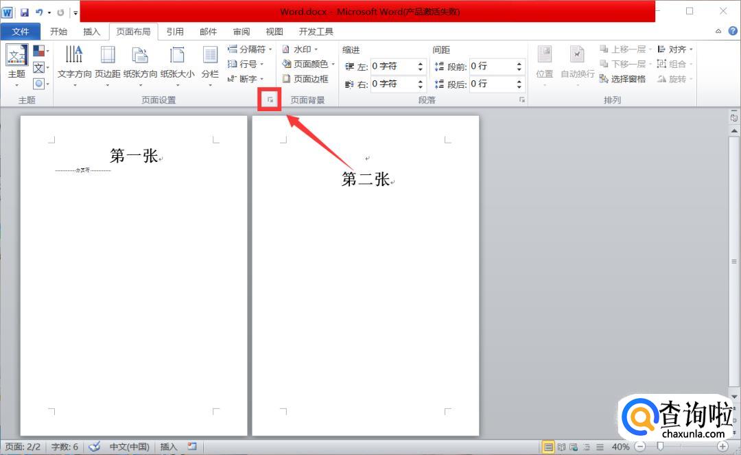 然后我们找到页面设置右下方的小箭头,找到之后点击它。