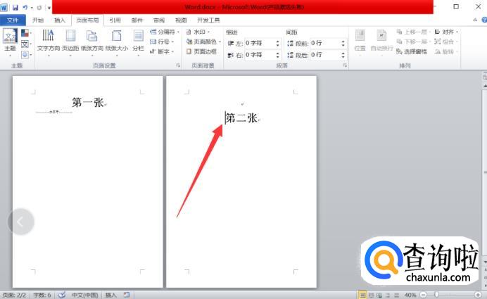 首先我们将光标移向第二页纸的最前面,想要把哪张纸设置为横向就将光标移向那张纸的前面。