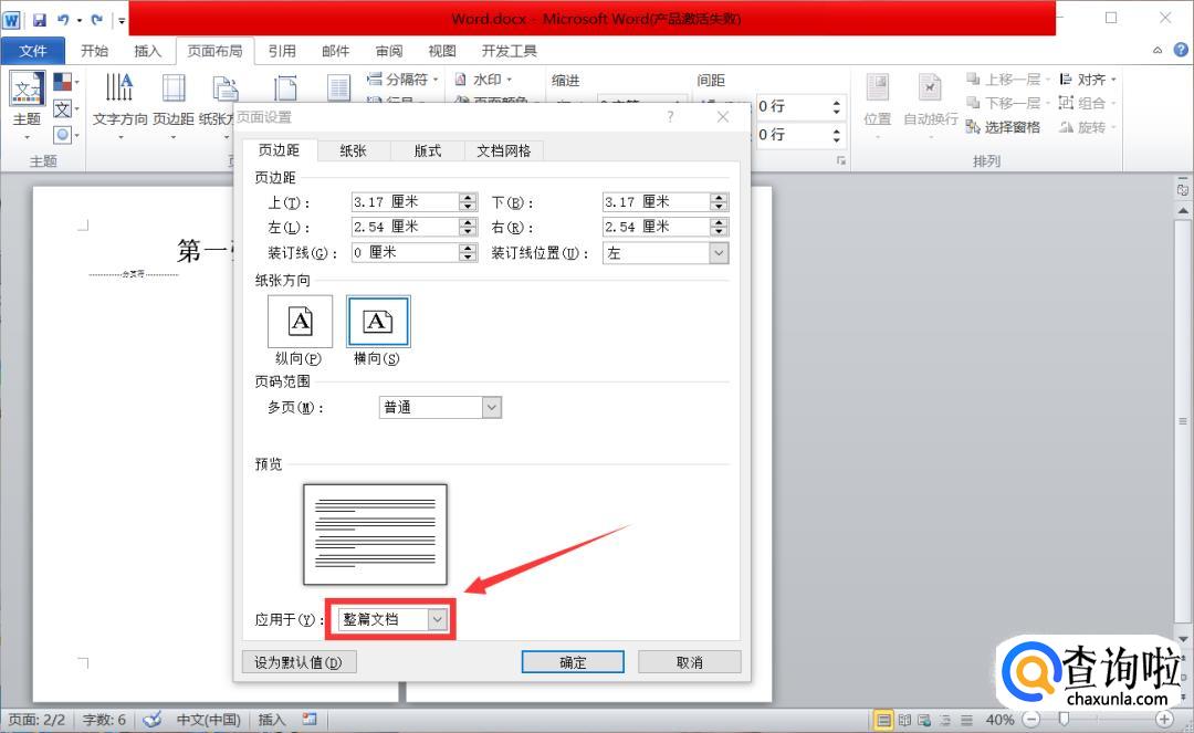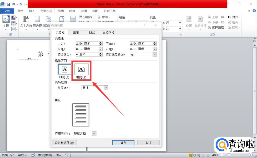 首先,我们将纸张方向选为【横向】。