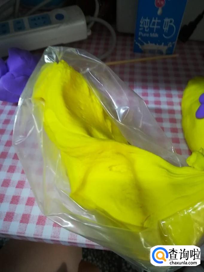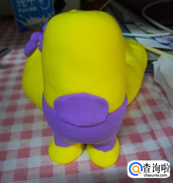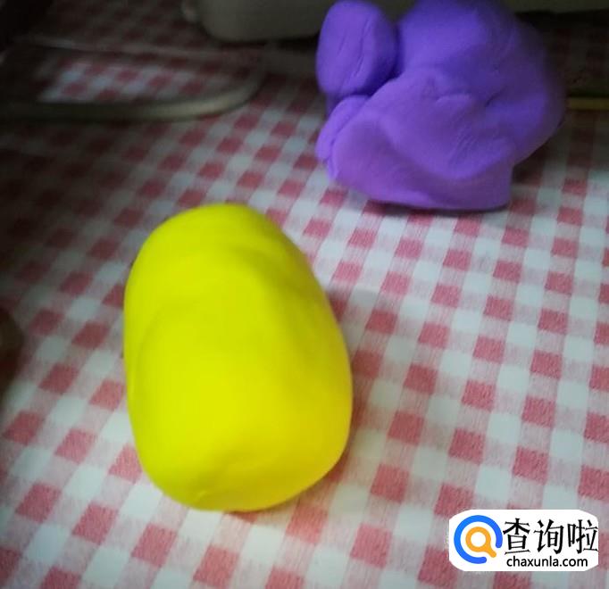 首先准备50克超轻黏土,需要黄色和一个其他颜色,小编用的紫色。然后做一个水桶模样的身体。