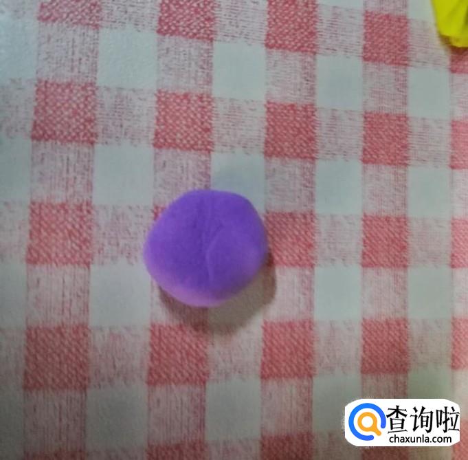 然后再取一点紫色粘土,搓成圆球,然后压扁。