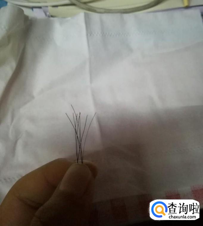 然后制作小黄人的头发,小编取材于自身,剪平后将头发戳进黏土里。