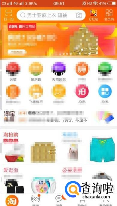点击上方的搜索栏,进入下一页面,在搜索栏中选择“天猫”,如图所示。