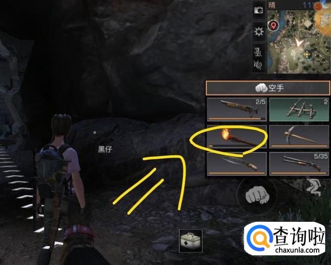 此时主角手里就会拿着火把了,可以靠火把取暖。