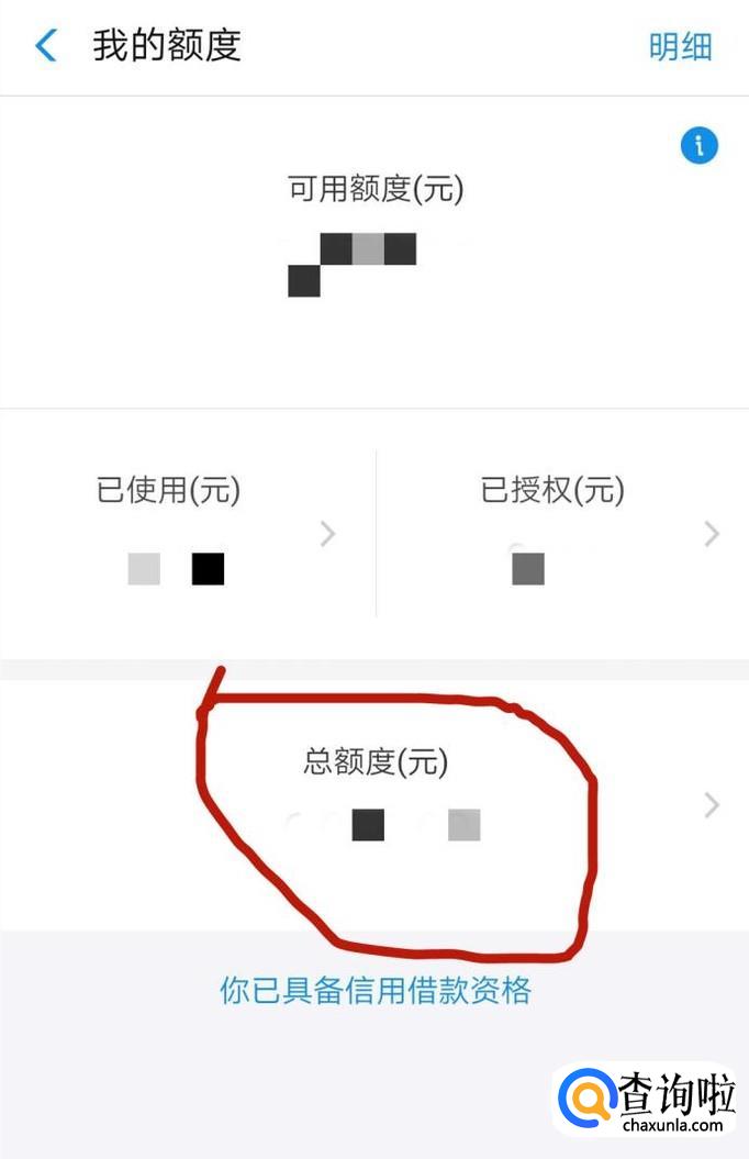 进入“我的额度”后,可以看到下方的“总额度”点击进入。