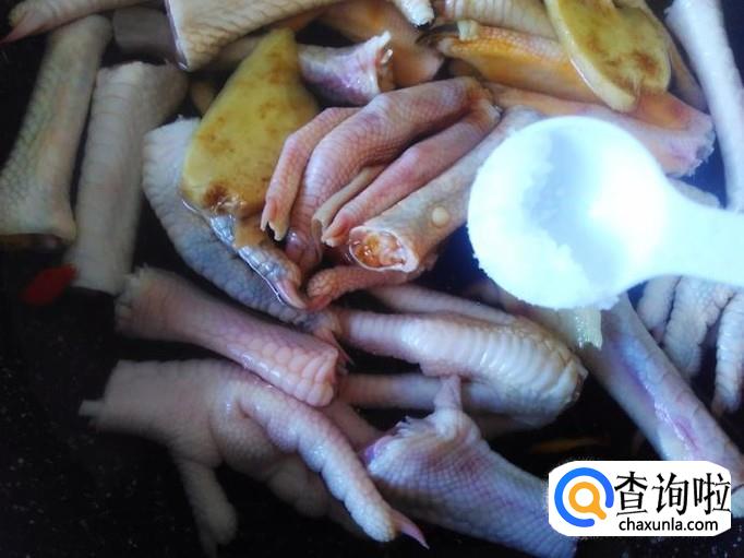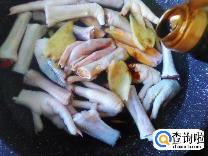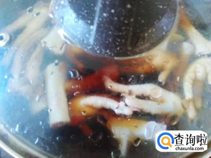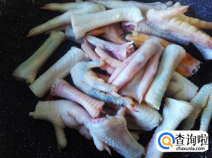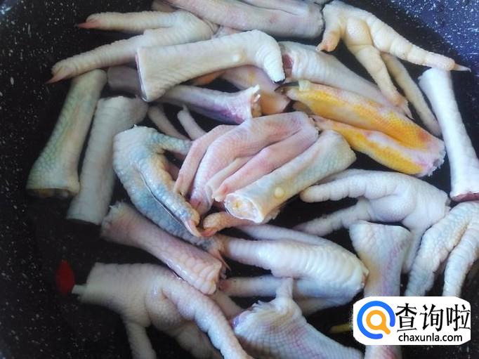 把鸡脚放到锅里,加水,水里没过食材。